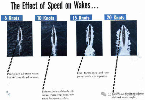 不是海员,对艏艉浪和航速的关系不是很清楚,正好找到一份二战时期的潜艇识别手册